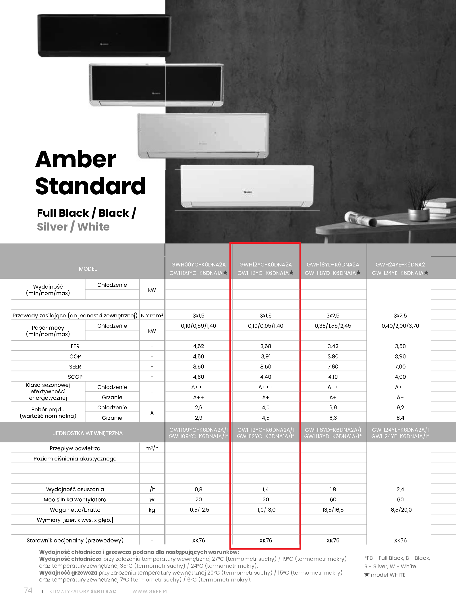 wszystkim szeroki zakres pracy (do -22 °C przy grzaniu oraz 43 °C przy chłodzeniu), wysoka klasa